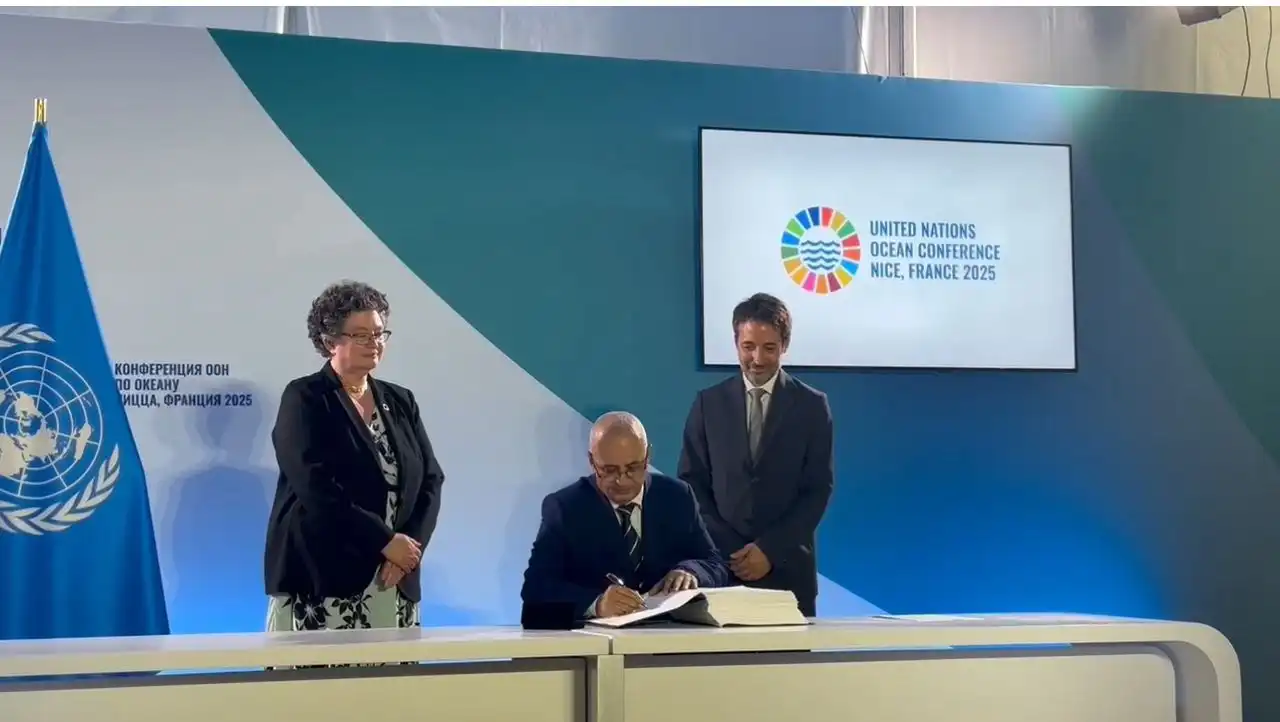 وقع وزير المياه والبيئة، المهندس توفيق الشرجبي، اليوم، على انضمام اليمن إلى اتفاقية أعالي البحار، وذلك خلال مشاركة الجمهورية اليمنية في مؤتمر الأمم المتحدة الثالث للمحيطات المنعقد في مدينة نيس الفرنسية.