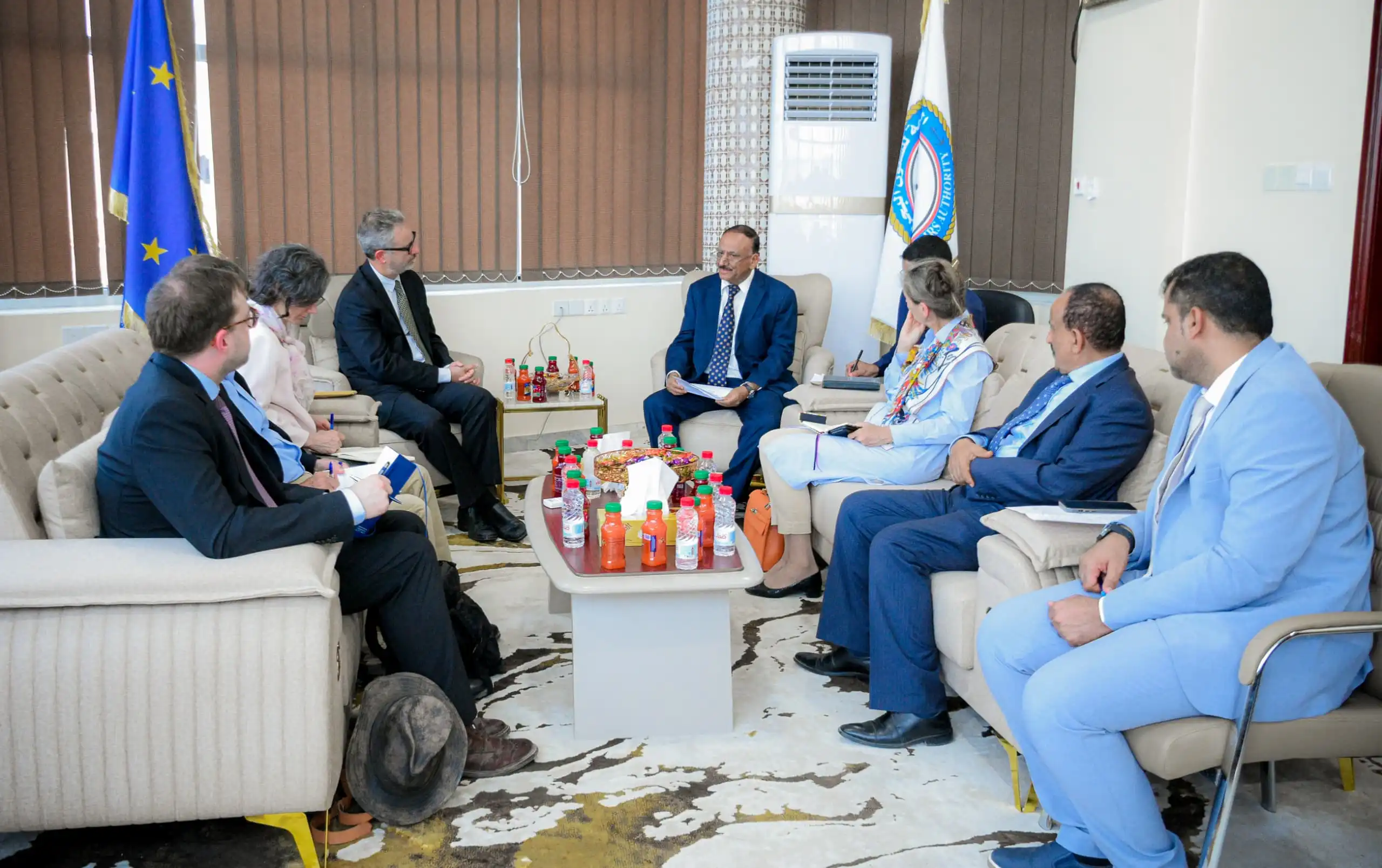 كما استعرض الوزير حُميد اوجه الدعم والمساعدات المقدمة من الاتحاد الاوروبي الى الحكومة التي شملت معالجة ملف خزان صافر لتجنب حدوث كارثة بيئة بحرية اضافة إلى مشروع أمن الموانئ في البحر الأحمر” كريماريو ٢ “من خلال بناء قدرات الهيئة العامة لشوون البحرية ومؤسسة موانئ خليج عدن ومصلحة خفر السواحل الى جانب ٱعادة تاهيل المركز الاقليمي البحري لتبادل المعلومات بمقر الهيئة العامة للشؤون البحرية.. داعياً لاستمرار هذا الدعم من اجل جعل هذه المرافق اكثر فعالية في تادية مهامها.