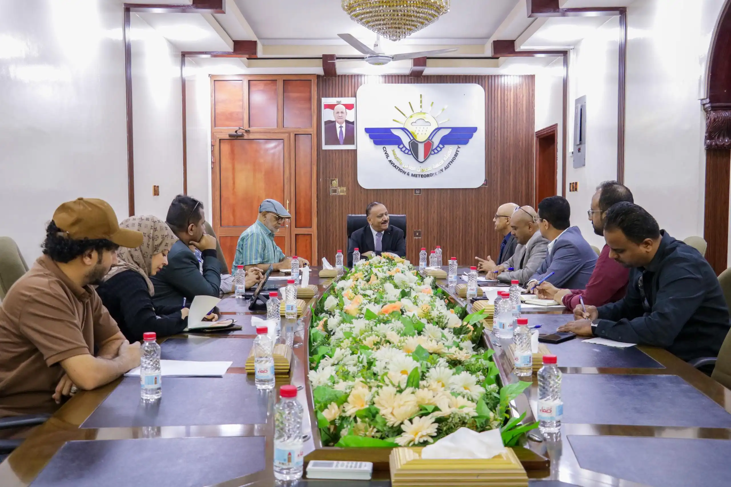 وزير النقل يترأس إجتماعاً موسعاً بقيادة وكوادر هيئة الطيران المدني ومطار عدن الدولي