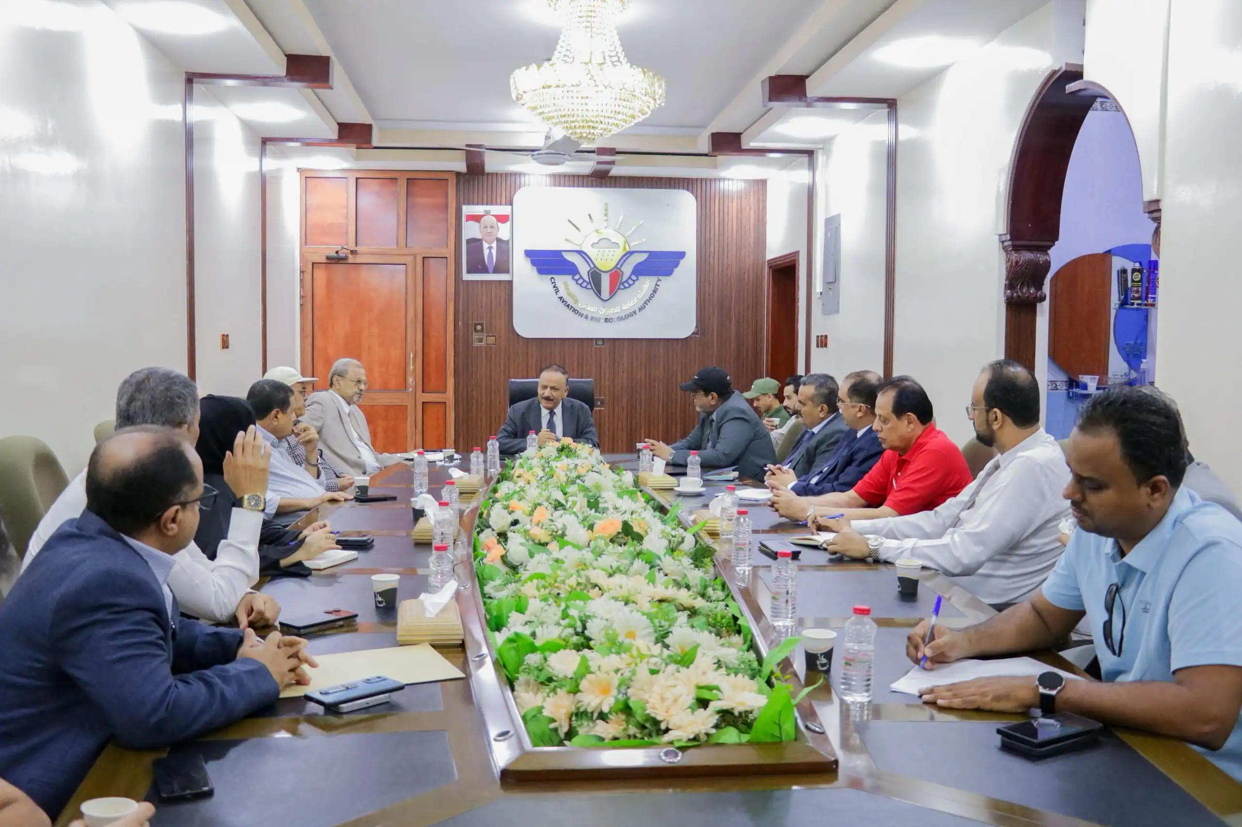 وزير النقل يناقش مستوى الاداء والإنجاز في الهيئة العامة للطيران المدني والمطارات في المناطق المحررة