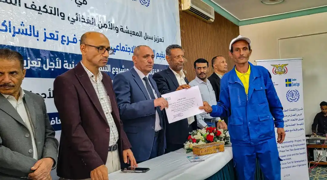 وكيل محافظة تعز يكرم خريجي مشروع التلمذة المهنية