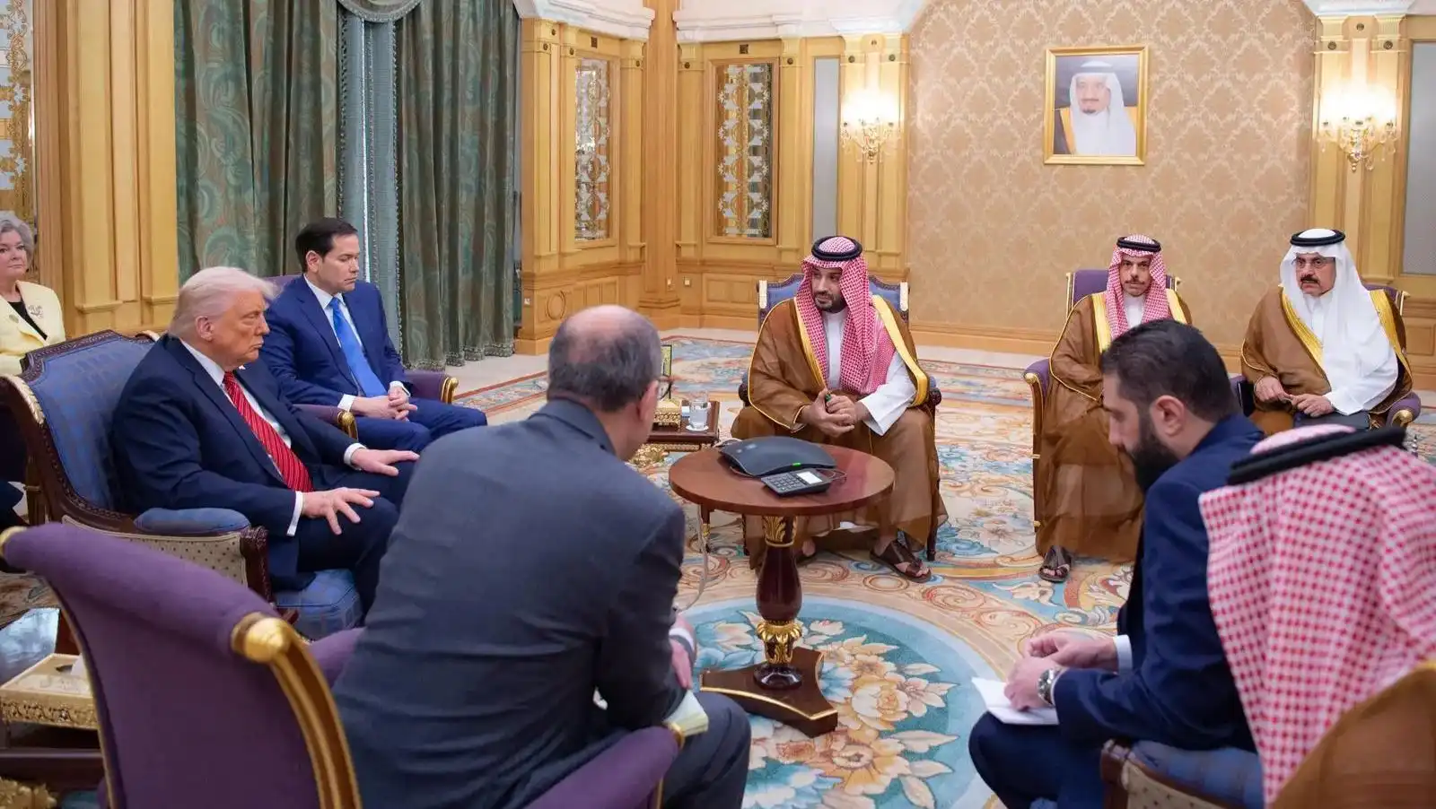 عقد في العاصمة السعودية الرياض، اليوم، لقاء بين ولي العهد رئيس مجلس الوزراء السعودي، صاحب السمو الملكي الأمير محمد بن سلمان بن عبدالعزيز آل سعود، والرئيس الامريكي، دونالد ترمب، والرئيس التركي رجب طيب أردوغان (مشاركًا عبر اتصال هاتفي)، والرئيس السوري، أحمد الشرع.