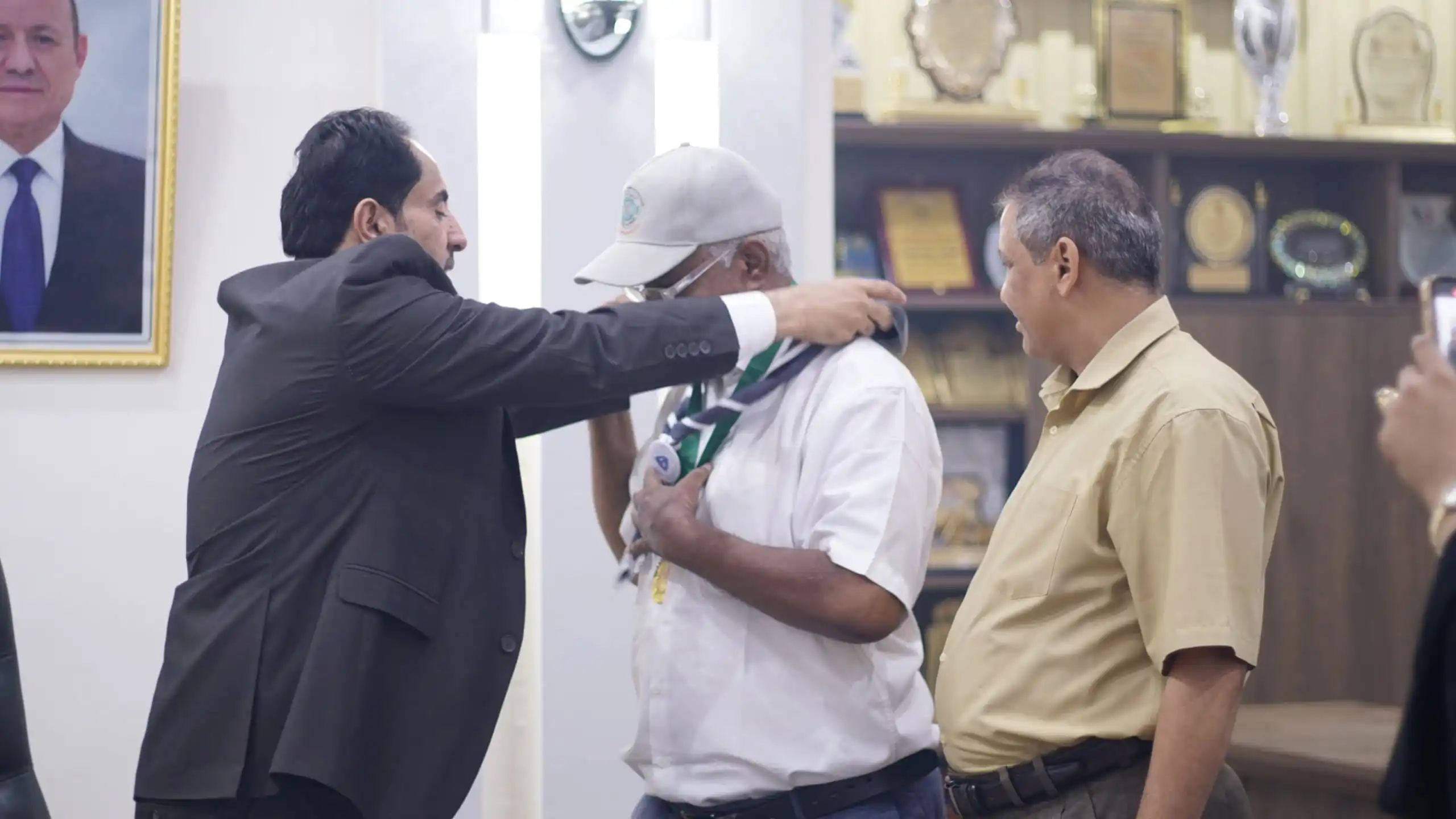 قلّد وزير الشباب والرياضة، رئيس جمعية الكشافة والمرشدات اليمنية، نايف البكري، اليوم، في العاصمة المؤقتة عدن، الرائد الكشفي منصور عامر، الميدالية والمنديل الكشفي اللذين حصل عليهما في مسابقة اليوم العالمي للمنديل الكشفي 2025، التي نظمها الاتحاد العربي لرواد الكشافة والمرشدات تحت شعار: “إرث المنديل الكشفي يعزز ثقافة التطوع”.