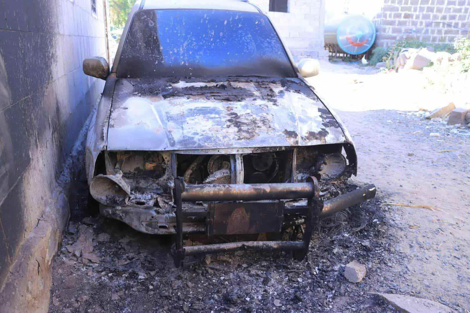 وقالت مصادر محلية إن الجناة تسللوا إلى أمام منزل المواطن عبدالدائم الصنة في منطقة “السهلة” بعزلة “صائر” بمديرية حبيش شمال المحافظة، وأشعلوا النيران في مركبته قبل أن يلوذوا بالفرار.