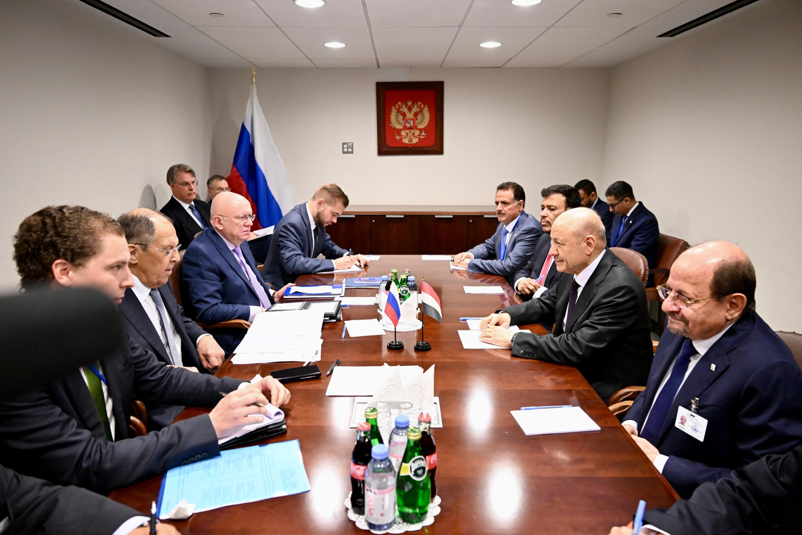 التقى فخامة الرئيس الدكتور رشاد محمد العليمي، رئيس مجلس القيادة الرئاسي ومعه عضو المجلس الدكتور عبدالله العليمي اليوم الجمعة، وزير خارجية جمهورية روسيا الاتحادية سيرجي لافروف، وذلك على هامش اجتماعات الجمعية العامة للأمم المتحدة.