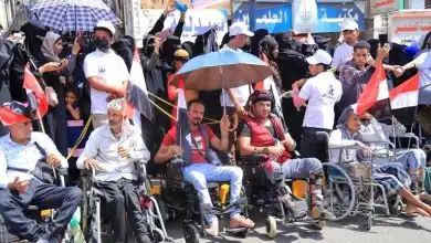 جرحى الجيش الوطني في تعز ينفذون وقفة احتجاجية للمطالبة بحقوقهم المالية والعلاجية