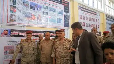 قائد محور تعز يزور معرض توثيق جرائم مليشيات الحوثي الإرهابية