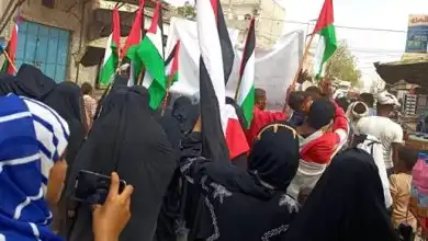 مظاهرات حاشدة في أبين ولحج تضامنًا مع غزة وتنديدًا بالعدوان الإسرائيلي