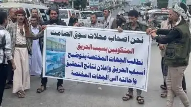 احتجاجات تجار إب للمطالبة بالتحقيق في حريق سوق الصامت التجاري