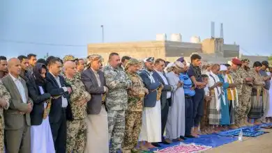 قائد اللواء الثالث عاصفة ووكيل محافظة إب يؤدون صلاة العيد مع منتسبي اللواء