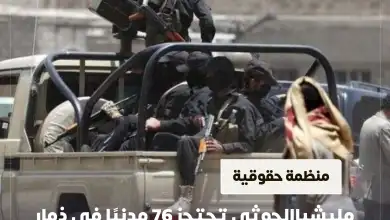 منظمة حقوقية: مليشيا الحوثي تحتجز 76 مدنيًا في ذمار