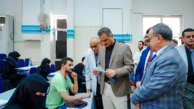 وزير الدولة محافظ عدن ورئيس جامعة عدن يتفقدان سير امتحانات المفاضلة بكلية طب الأسنان بجامعة عدن
