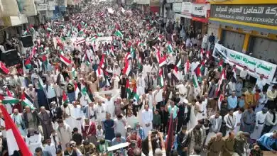 حشود جماهيرية بمأرب وتعز تحتفي بانتصار المقاومة الفلسطينية وتندد بجرائم الاحتلال