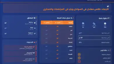 الأرصاد: طقس معتدل في السواحل وبارد في المرتفعات والصحاري