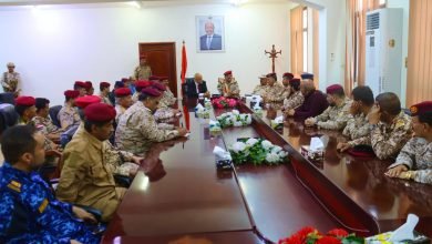 وزير الدفاع ومحافظ تعز يعقدان اجتماعاً موسعاً بالسلطة المحلية والقيادات العسكرية والامنية