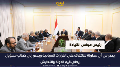 رئيس مجلس القيادة يحذر من أي محاولة للالتفاف على القرارات السيادية ويدعو إلى خطاب مسؤول يعلي قيم الدولة والتعايش