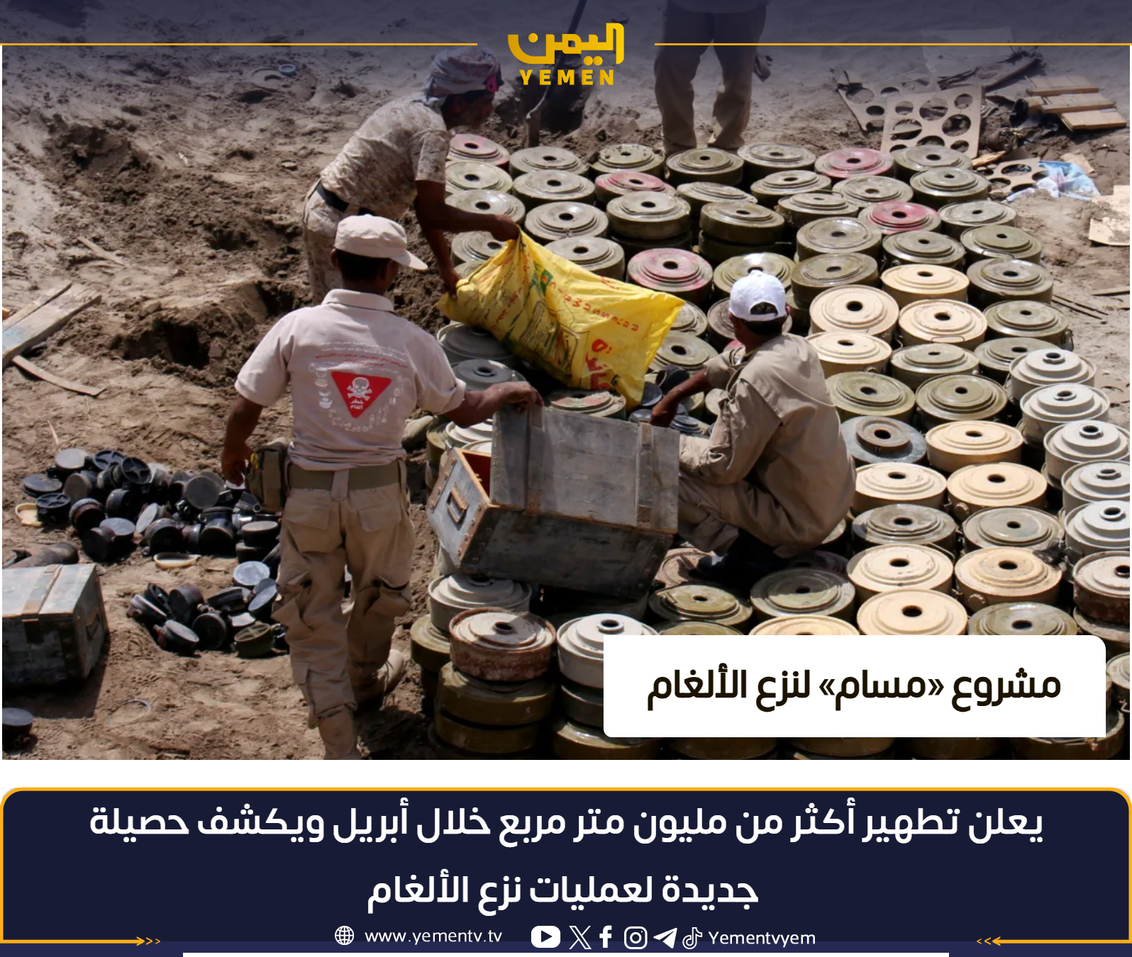 «مسام» يعلن تطهير مليون متر مربع من الألغام في أبريل