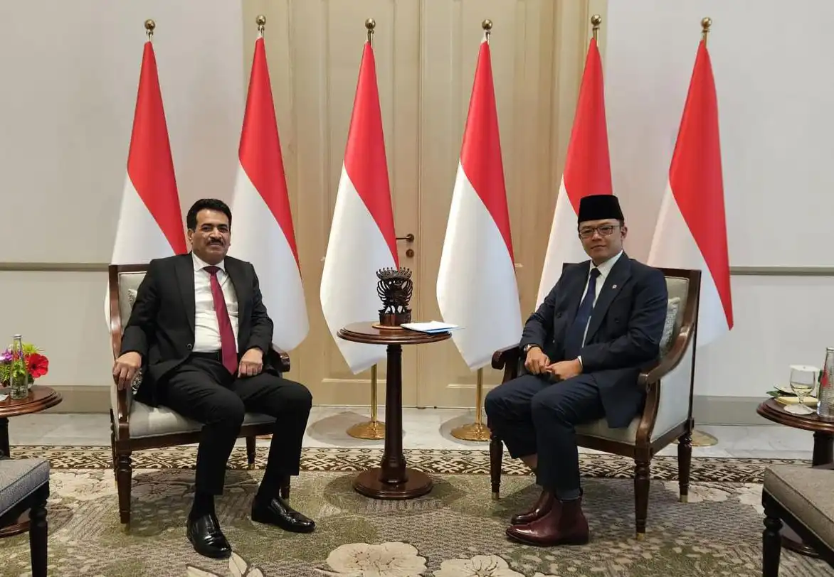 حضر اللقاء مدير دائرة الشرق الأوسط بوزارة الخارجية الإندونيسية أهرول ساني فتح الرحمن.